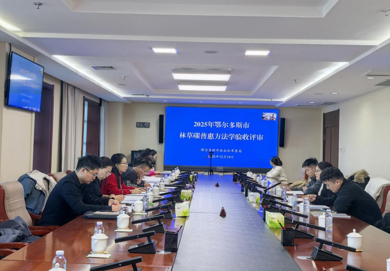 12月14日,鄂尔多斯市林草局组织召开“2025年鄂尔多斯市林草碳普惠方法学”成果评审会。来自中国林业科学研究院、中环联合(北京)认证中心以及鄂尔多斯市生态环境、林草领域的相关专家参加评审。