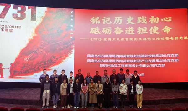 为深入推进爱国主义教育,深刻领会伟大抗战精神实质,9月23日,产业发展规划处党支部、基础设施规划处党支部与昆明林勘院工程勘察设计有限公司党支部联合开展“铭记历史践初心 砥砺奋进担使命”主题党日活动,组织全体党员集中观看爱国主义电影《731》,以“电影党课”形式,让党性教育更具感染力与冲击力。