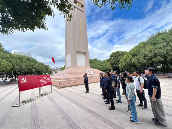 活动伊始,全体党员在胜利堂前,面向人民英雄纪念碑肃立,高举右拳重温入党誓词。“我志愿加入中国共产党……”铿锵誓言与革命浮雕交相辉映,进一步坚守初心使命。
