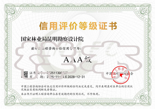 工程咨询单位信用评价是中国工程咨询协会按照《工程咨询单位信用评价管理办法》,通过相关单位申报、专家评审、公示等程序,对单位专业能力、经营管理、创新能力和信用管理等方面23项指标进行综合考核的评价体系。信用等级参照国际惯例分为AAA、AA、A、B、C五个等级。我院此次成功获得工程咨询单位信用评价AAA级,这既是对我院工程咨询服务综合能力的全面肯定,更是对我院未来发展的莫大鼓舞,同时也提升了我院在行业中的品牌影响力。我院将持续坚守“立足西南,服务林草;立足生态,服务社会”的发展宗旨,不断提升综合业务实力和社会竞争力,为林草事业高质量发展提供更好的技术支撑和服务。