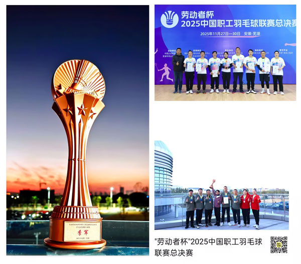 11月27日至12月1日,“劳动者杯”2025中国职工羽毛球联赛总决赛在安徽芜湖举行,来自航空、林业、电子、电力、煤矿、铁路、教育、科技等行业及安徽本地运动员,齐聚江城,共同角逐这场国内顶级职工羽毛球赛事的年度荣誉。我院代表队历经多轮激烈角逐,凭借默契协作与顽强拼搏,最终斩获青年混合团体行业组第三名的优异成绩,在全国职工体育竞技舞台上充分展现了我院职工的昂扬风采。