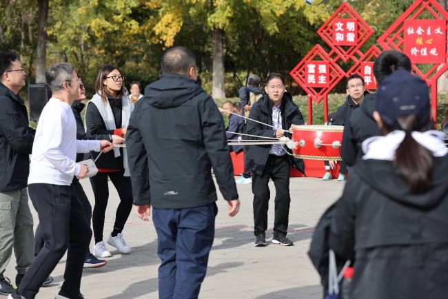 健步走结束后,工会精心组织了“同心鼓”团建活动,各组队员多人拉绳开展操鼓颠球竞赛,需要大家凝心聚力、团结协作,队员们全神贯注、步调一致,现场气氛紧张而热烈,迅速将活动氛围推向高潮。集体活动结束后,各工会小组开展了多项文体活动,轻松向上的氛围一路延续,欢声笑语持久回荡。