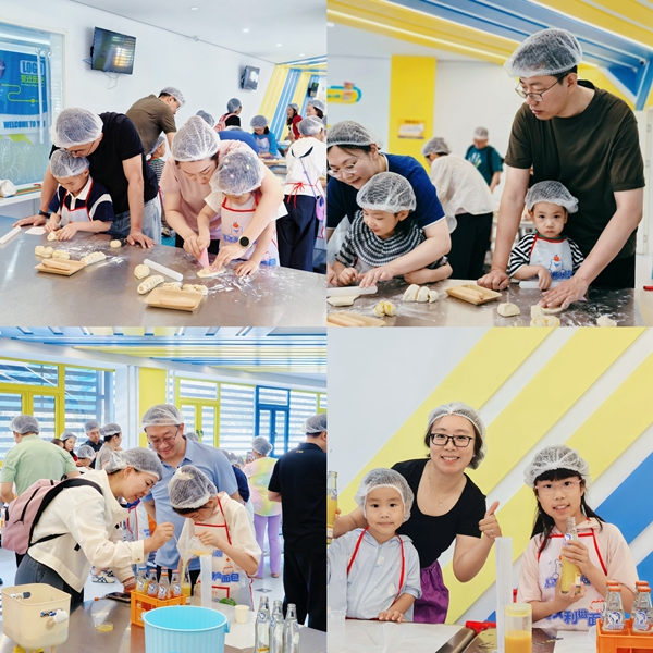 随后,亲子制作环节正式开始。在面包制作区,面点师傅详细示范了揉面、塑形、点缀馅料、造型等步骤。孩子们充分发挥想象力,将面团变幻成各式各样的可爱形状;家长们在一旁耐心协助,现场洋溢着欢声笑语。汽水制作环节中,大家认真学习调配比例,小心翼翼地将不同原料混合,看着自己亲手制作的汽水渐渐泛起晶莹气泡,孩子们脸上绽放出自豪而满足的笑容。