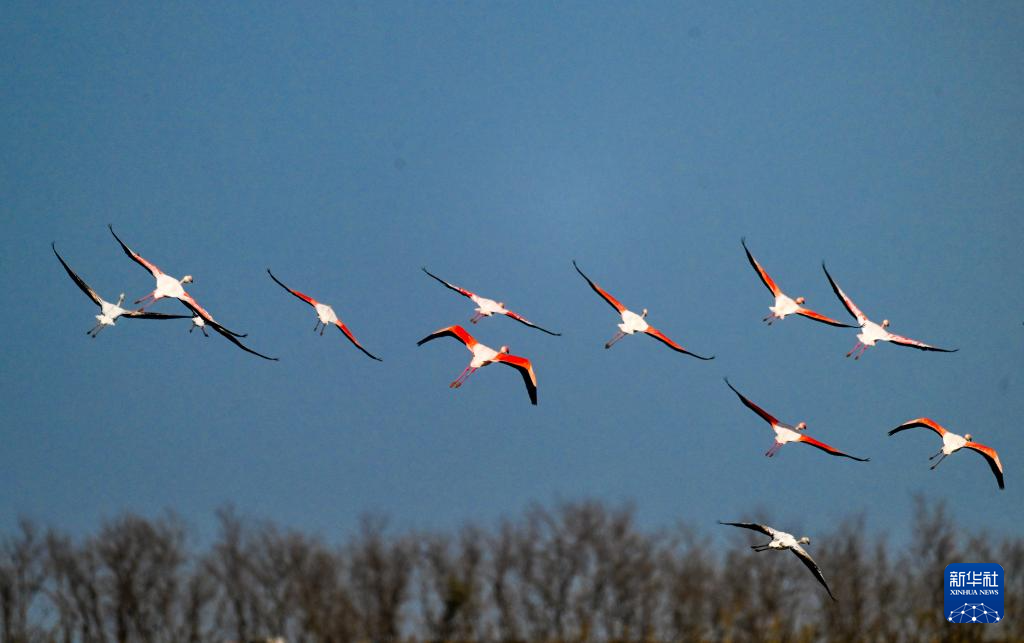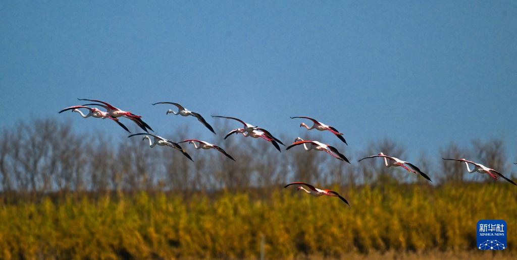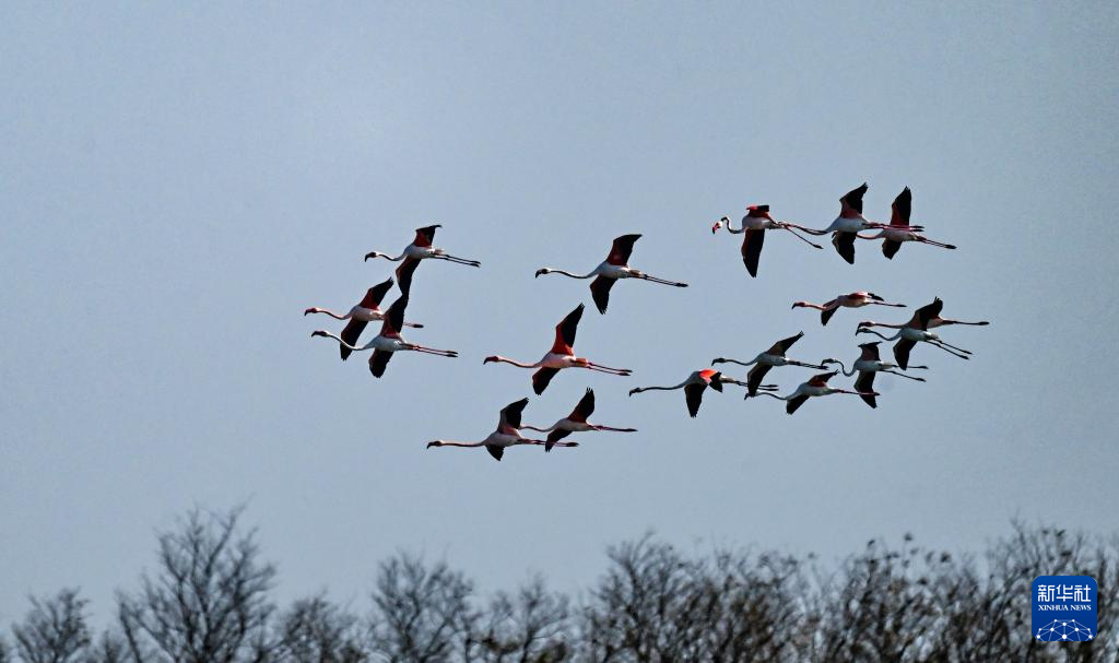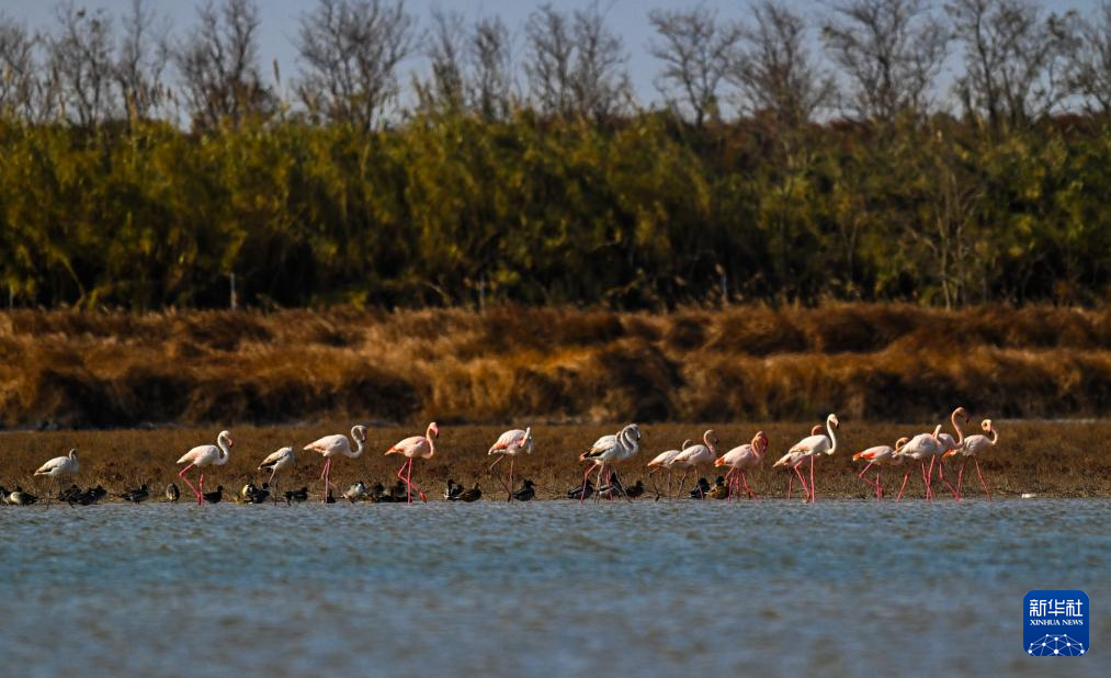近日,一群火烈鸟陆续飞抵江苏东台条子泥湿地。据了解,自2015年起,火烈鸟已连续11年来此越冬。由于条子泥湿地保护和修复不断加强,生态环境持续向好,火烈鸟数量逐年增加。
