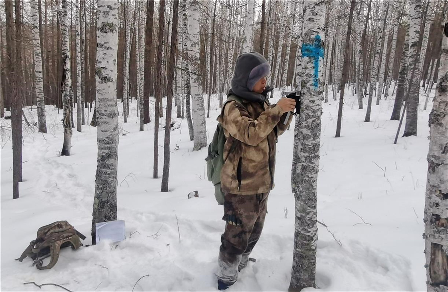 在大雪中开展森林调查