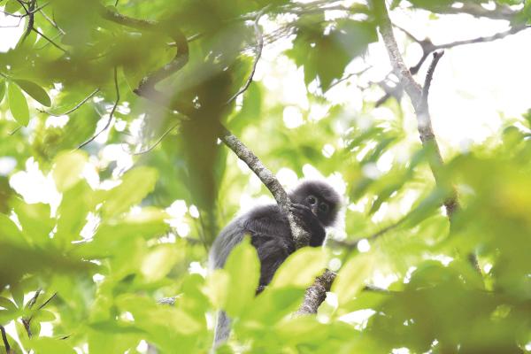 在距离云南省德宏州芒市城区十几公里外的林区,有这么一群可爱的“精灵”,它们身披灰色毛发,黑珍珠般闪亮的双眼周边“涂”着淡蓝色的眼影,拖着长长的尾巴,时而穿越林冠,时而嬉戏溪谷,如果碰巧在森林里遇见,可能还会挥“手”和你打招呼。它们,就是国家一级重点保护野生动物——菲氏叶猴,当地人俗称灰叶猴。