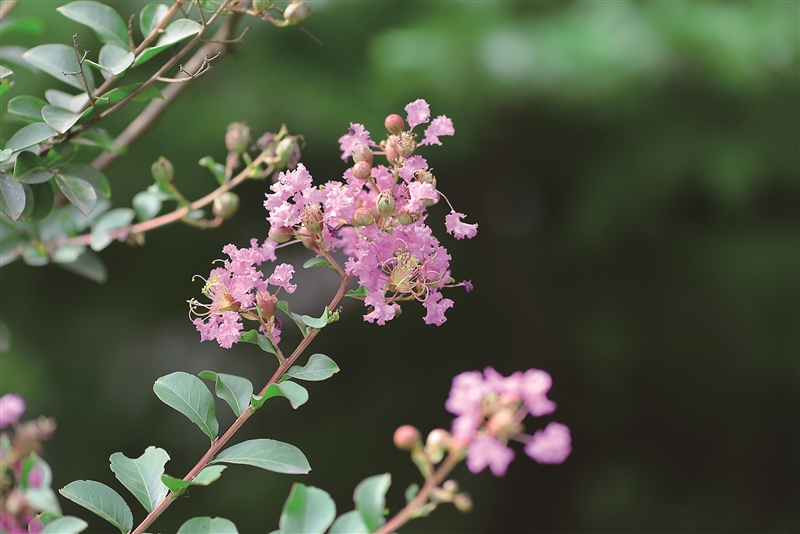 紫薇又称“百日红”“痒痒树”“无皮树”,这些有意思的别名,都形象地展现了它的特性。