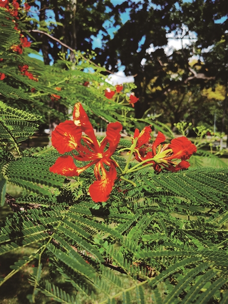 每逢毕业季,南方校园里的凤凰花开始盛放。一团团鲜红色、朱红色的花朵在绿叶映衬下,宛如燃烧的火凤凰染红了天空,洋溢着青春的热情和生命的蓬勃。