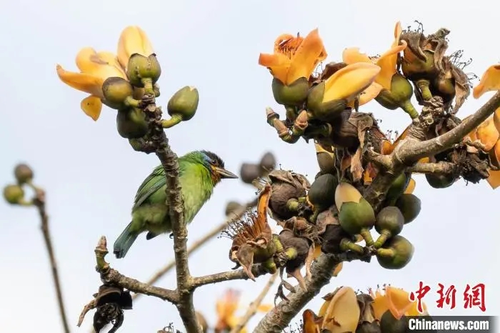据介绍,黑眉拟啄木鸟体长约20至23厘米,拥有独特的黑色眉纹和艳丽的绿色羽毛,叫声独特鲜明。此鸟种原本分布在中国南部地区,包括台湾、海南等地,但在湖北境内的出现则标志着其生境分布正在不断向北扩散。