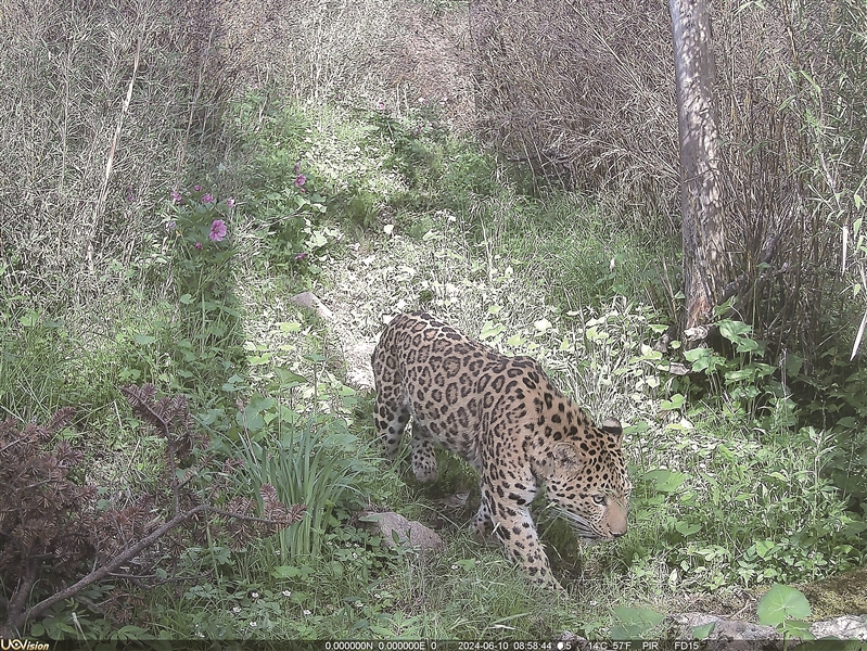 图为在秦岭腹地拍摄到的野生金钱豹。 (黄凯供图)