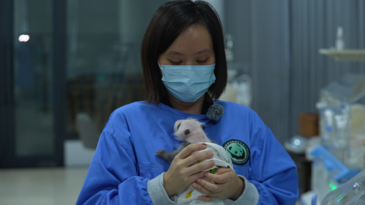 肖永丽准备为熊猫宝宝做日常体检。中国大熊猫保护研究中心供图