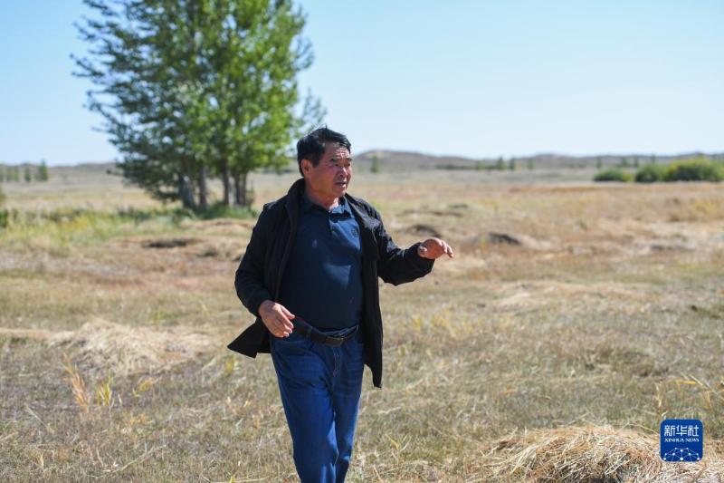 廷·巴特尔在查看自家草场(9月8日摄)。新华社记者 刘磊 摄