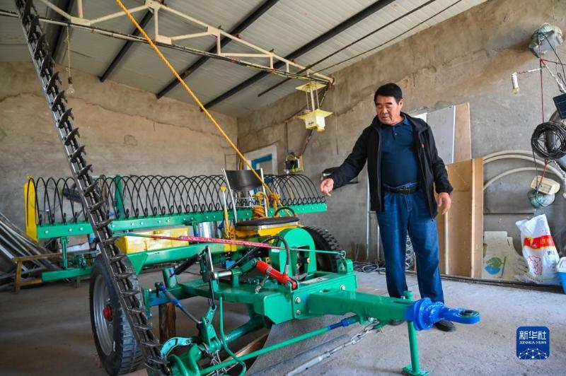廷·巴特尔在库房查看工具(9月8日摄)。新华社记者 刘磊 摄