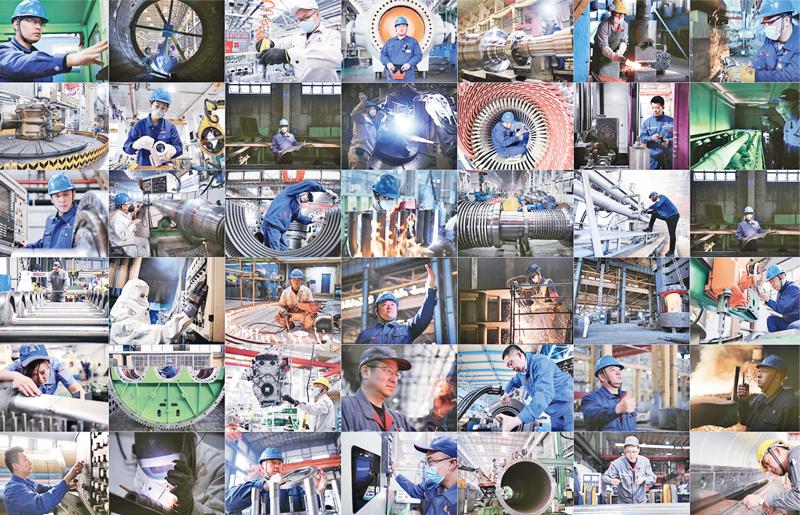 大国重器接续打造,工匠精神代代相传。图为中国一重、哈电集团、中车齐车集团等大国重器企业生产一线的共产党员在岗位上生产作业(拼版照片,2021年4月摄)。 新华社记者 王建威/摄