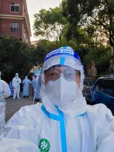 作为专员办第三党支部的一名党员干部,袁鑫同志哪里需要哪里去,第一时间到浦东新区高行镇绿洲第三居民区党总支报到,在坚持居家办公的同时,积极投身防疫一线,展现新时代党员风采。他参加了门岗、核酸、蔬菜3个志愿服务保障组,在疫情面前挺身而出,不怕苦、不怕累,用实际行动践行初心和使命。每次穿上防护服至少4到5个小时,每次发放物资都耗时耗力,无论是炎炎烈日、还是刮风下雨;每次为居民采购物资,都认真统计、准确核算;每次参加核酸和抗原检测工作,都及时发布信息,耐心做好政策解释,认真维护现场秩序。小区到现在封闭了一个多月了,大家有段时间比较焦虑,他就经常发些好消息,给大家传递正能量,缓解大家情绪。