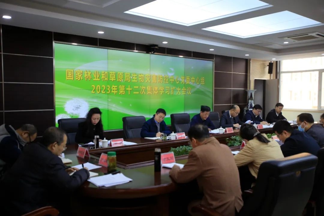 12月25日,国家林草局生物灾害防控中心召开2023年党委理论学习中心组第十二次集体学习扩大会议。党委书记、主任郭文辉主持会议并讲话。