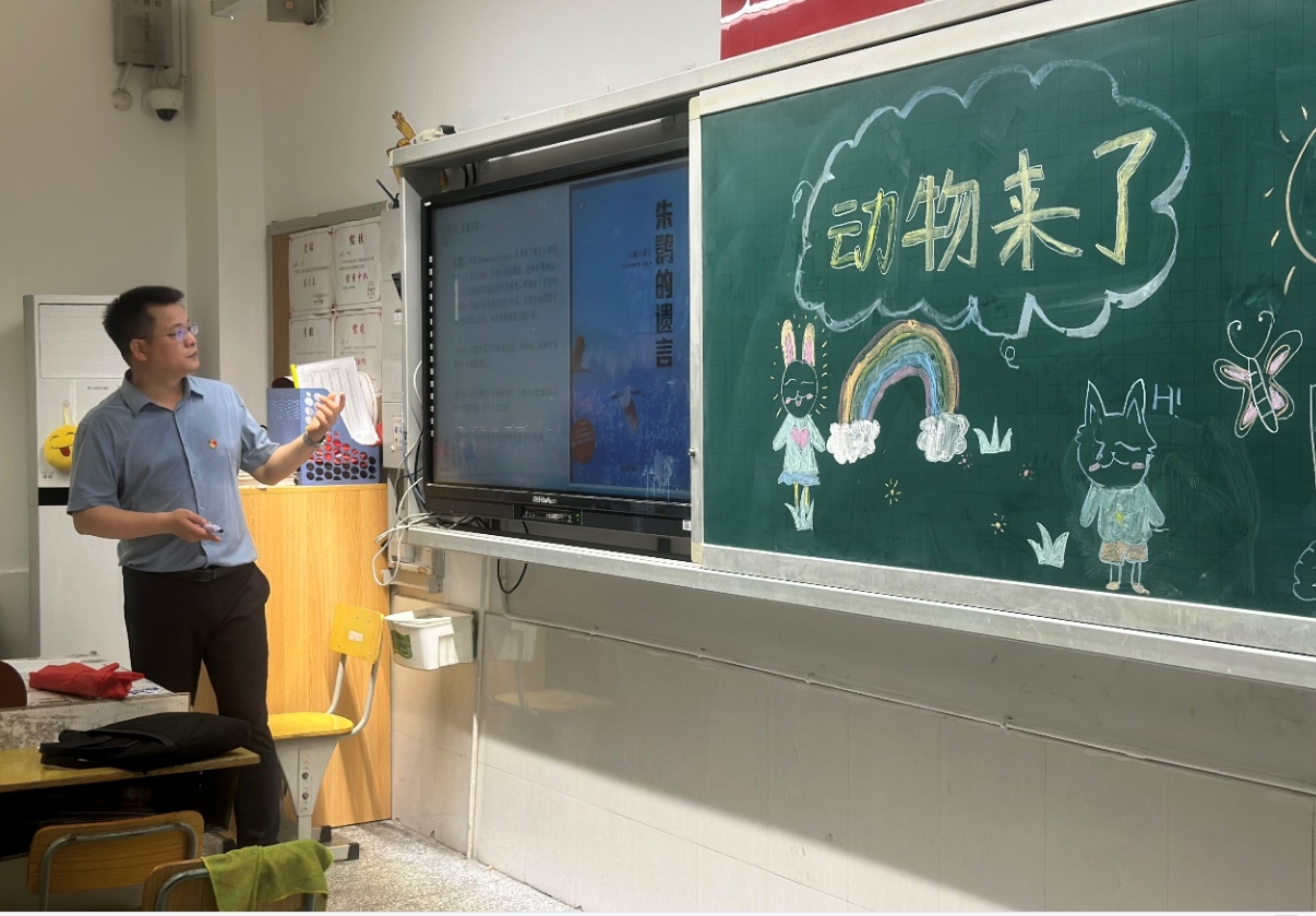 课堂上,生产技术管理处党支部书记刘扬晶向同学们传授了“动物的分类、动物之最、珍稀濒危动物、保护动物从我做起”等知识,告诉他们我国的“国宝”大熊猫受威胁程度等级从“濒危”降为“易危”,野外种群数量40年间从1114只增加到近1900只;朱鹮由发现之初的7只增长至目前野外种群和人工繁育种群总数达到11000只;藏羚羊数量已从1995年的7万只增加至目前的30万只;海南长臂猿从1984年的9只恢复到现在的37只……授课内容生动有趣,同学们在轻松愉悦的氛围下,听得仔细,学得认真,纷纷为我国野生动物保护取得的巨大成绩自豪鼓掌,表示今后要为国家的野生动物保护事业贡献力量。