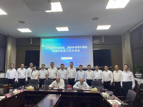11月15日,大兴安岭林业集团公司党委书记于辉、副总经理石景岩等一行10人到国家林草局中南院开展党建和业务工作交流。座谈会由中南院院长、党委书记张平主持,全体院领导及相关处室主要负责人参加座谈。