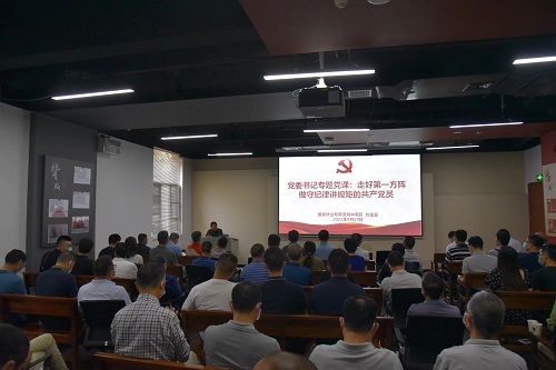 随后,刘金富在会议室以“走好第一方阵、做守纪律讲规矩的共产党员”为主题,结合中南院实际,从为什么要做“守纪律、讲规矩”的共产党员、共产党员守什么纪律、讲什么规矩及共产党员怎样守纪律、讲规矩三个方面给全体党员讲专题党课。党课强调,守纪律、讲规矩永远在路上,全院党员干部要始终牢记党纪党规、守住底线红线,把心思和精力用在干事创业上、用在为职工群众服务上,以昂扬的精神风貌和饱满的工作热情走好第一方阵,为推动中南院各项事业高质量发展和生态文明建设贡献智慧和力量,以实干实绩迎接党的二十大胜利召开。