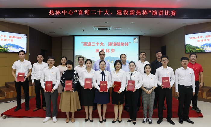 10月14日,中国林科院热林中心举办“喜迎二十大,建设新热林”演讲比赛。广西凭祥市委组织部和宣传部、中国林科院热林中心有关同志出席活动并任评委。