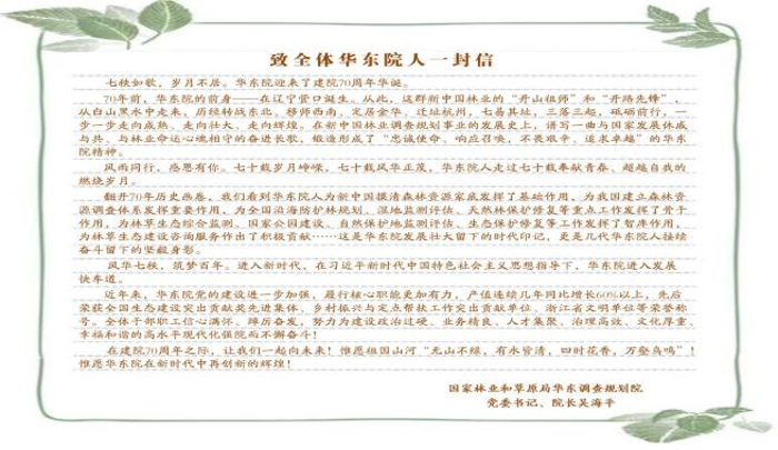 时光荏苒,岁月如梭。1952—2022年,国家林业和草原局华东调查规划院走过了70个春秋。11月7日,为庆祝建院70周年,弘扬“忠诚使命、响应召唤、不畏艰辛、追求卓越”的华东院精神,华东院举办“职工文化周”开幕式暨“青春心向党 筑梦新时代”主题团日活动。