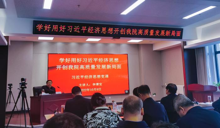 为深入学习贯彻习近平经济思想,激发并保持全院职工锐意进取、埋头苦干的精神状态,努力推动全院发展向更高质量、更有效率、更加公平、更可持续、更为安全的目标迈进,10月9日,西北院院长李谭宝以《学好用好习近平经济思想,开创我院高质量发展新局面》为题,为全院干部职工讲专题党课。