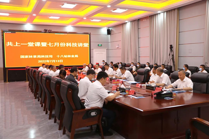 讲堂以线上线下相结合方式召开,科技司有关人员、大兴安岭林业集团有关负责同志、黑龙江省林草局科技处有关同志、十八站林业局副处级以上干部在主会场参会,科技司在家干部职工,科技中心、林科院、竹藤中心、林学会相关人员以视频方式参加。