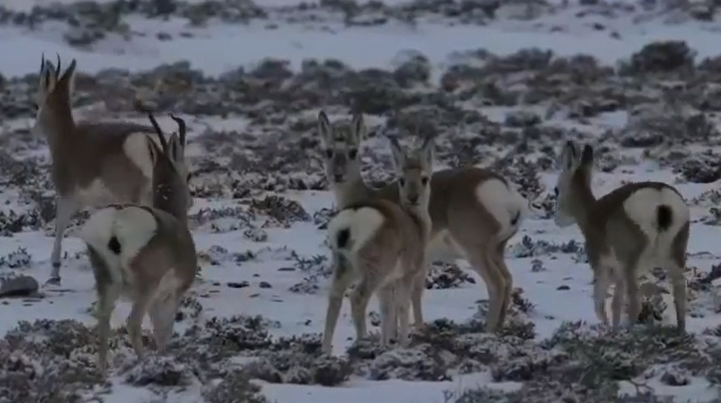 甘肃阿克塞:祁连山下藏原羚雪中嬉戏