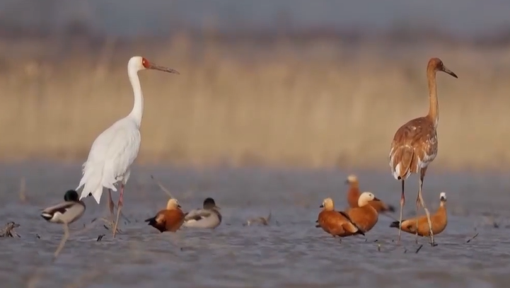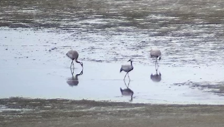 国家二级重点保护鸟类灰鹤飞抵甘肃敦煌阳关湿地