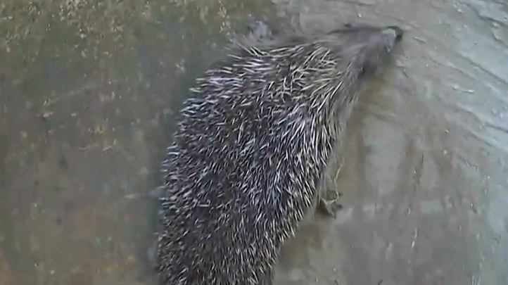 湖北十堰:刺猬迷路误入小区 男子捡到放归山林