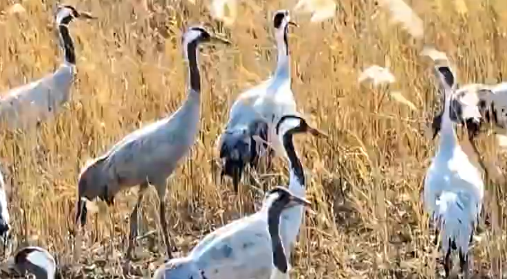 甘肃黄河首曲国家级自然保护区:黑颈鹤集群准备南迁