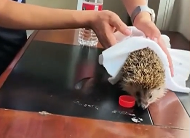 湖北嘉鱼:刺猬宝儿迷路了 被送到派出所找家