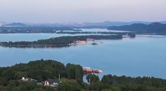 江西九江:最美水上公路再现鄱阳湖 水流平稳前请勿冒险涉水