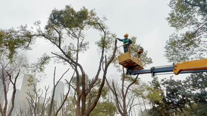 湖北武汉:常绿植物疏枝修剪 提升公园绿化“颜值”