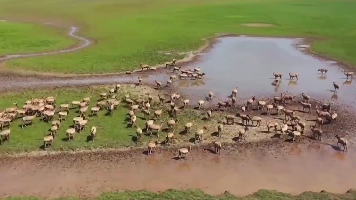 甘肃:阿克塞哈尔腾草原成为野生动物栖息乐园