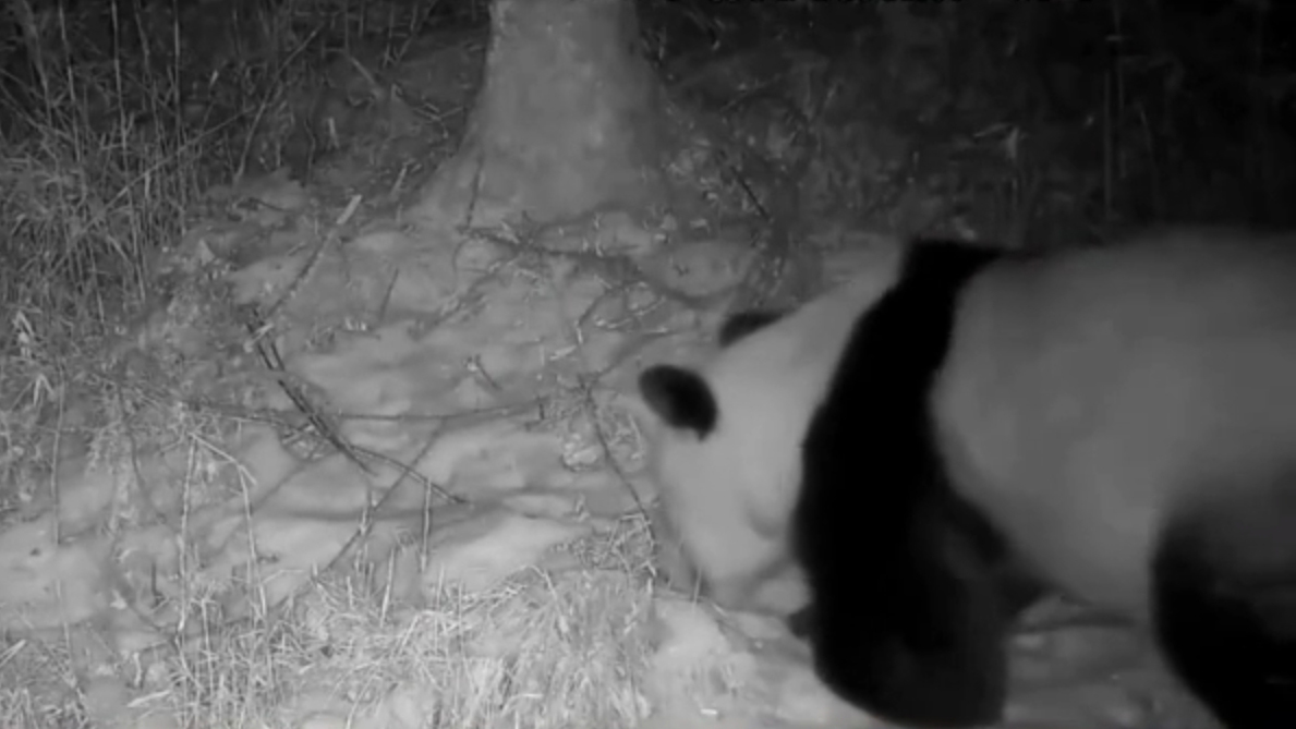 甘肃陇南:野生大熊猫雪中嬉戏 萌态十足