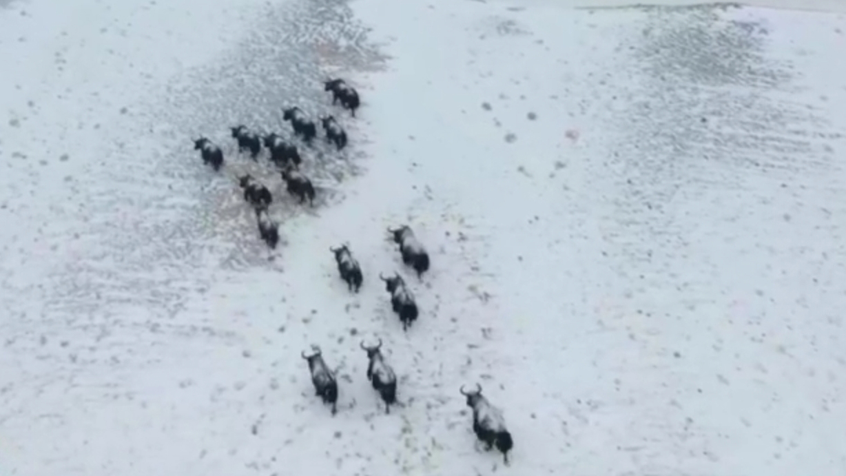 甘肃阿克塞:哈尔腾出现国家一级保护动物野牦牛群