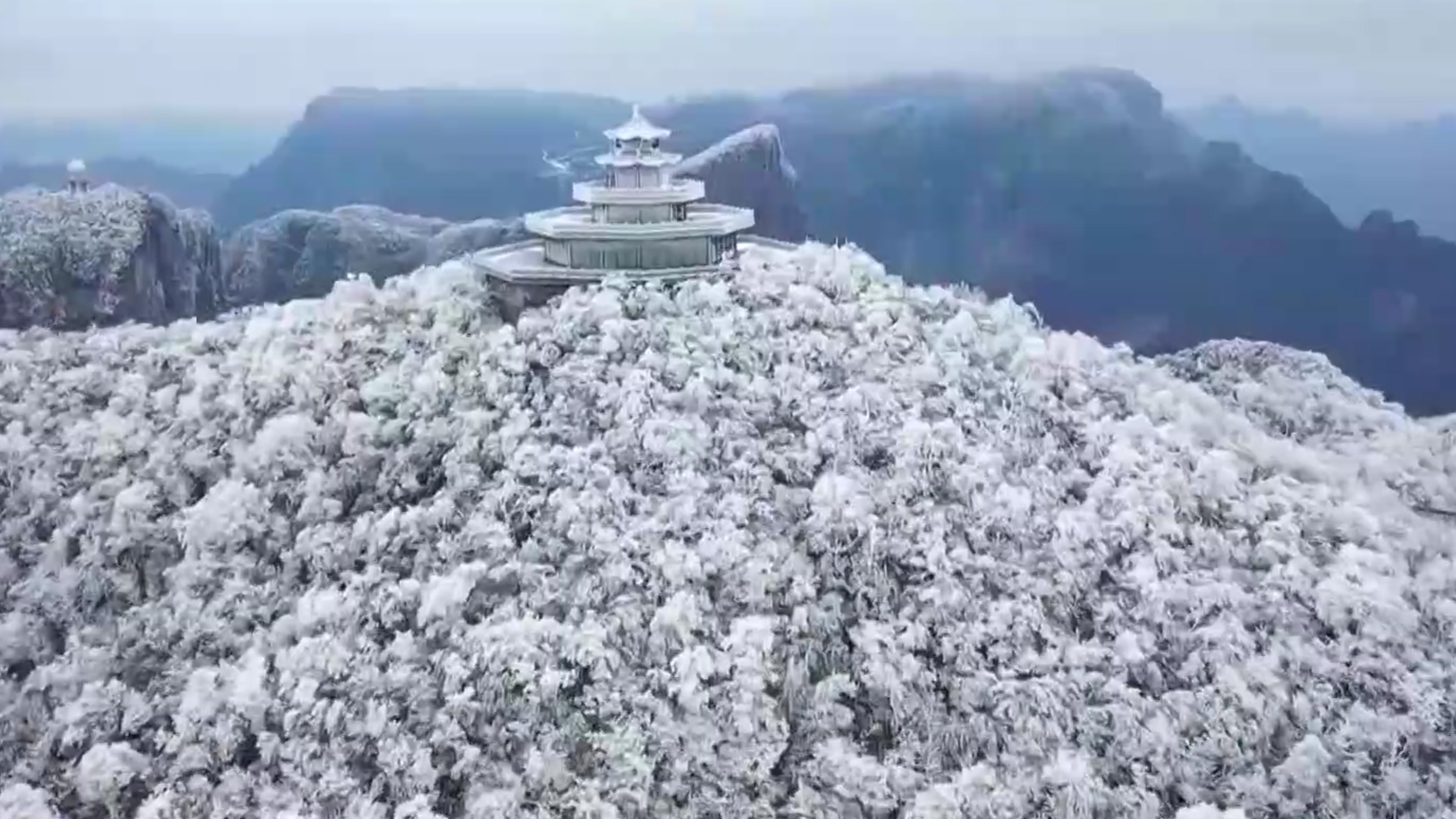 福建北部迎来首场雾凇 金铙山银装素裹如诗如画