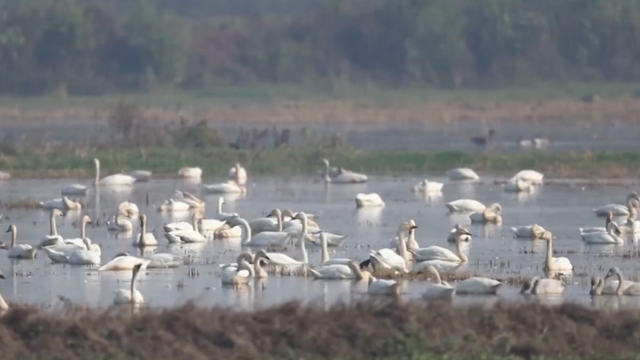 湖南岳阳:大批小天鹅聚集栖息屈原东古湖