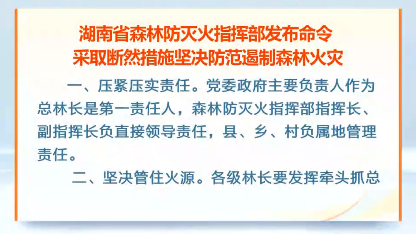 湖南省森林防灭火指挥部发布命令 采取断然措施坚决防范遏制森林火灾
