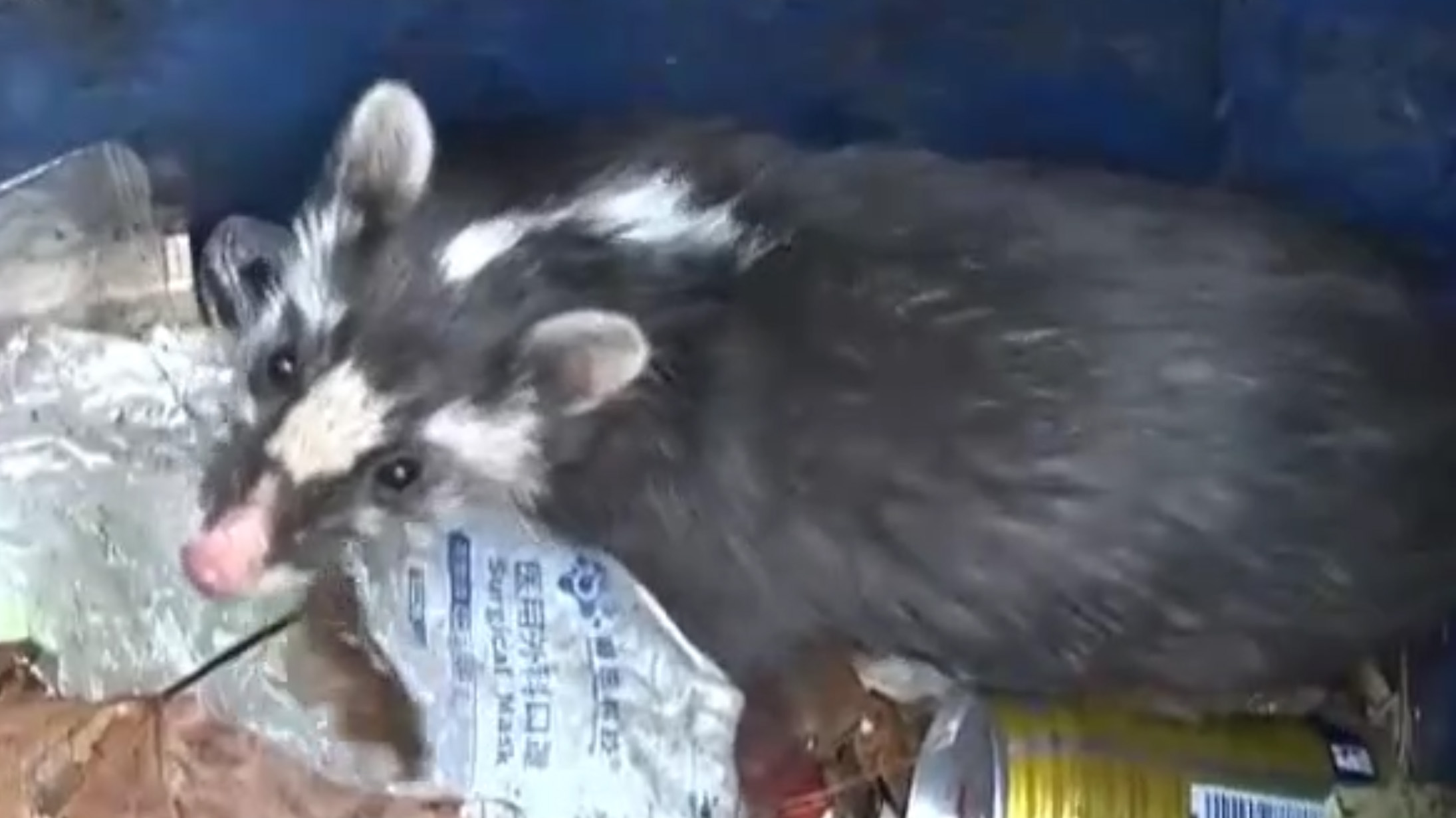 江西庐山:二级保护动物狗獾 觅食被困垃圾
