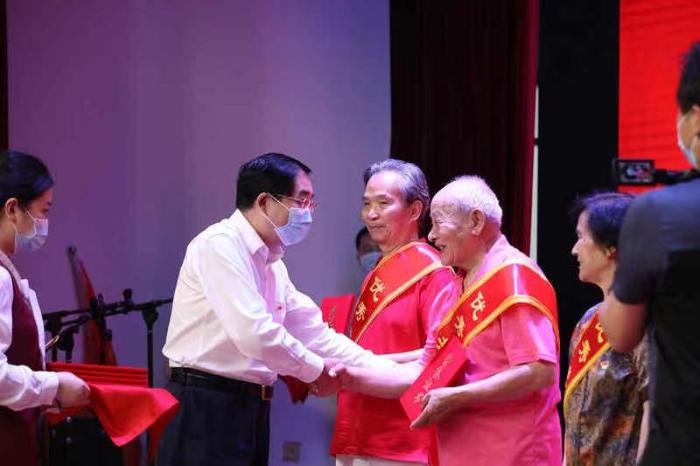 首先,举行国家林业和草原局“光荣在党50年”纪念章颁发仪式。国家林业和草原局共有304位老党员获得“光荣在党50年”纪念章,其中离退休干部局有175名。国家林业和草原局党组书记、局长关志鸥,应急管理部党委委员兼国家林业和草原局党组成员、副局长张永利为10位老党员代表颁发纪念章,向百岁老党员代表黄枢送上“松鹤延年”书法作品,祝福老人家身体健康、延年益寿。同时,播放了离退休干部局专门制作的离退休干部党员“最想对党说的话”视频。老党员代表表达了对党的深厚情感和为党的事业奋斗终身的坚定决心。国家林业和草原局党组书记、局长关志鸥,在京的领导班子成员应急管理部党委委员,兼国家林业和草原局党组成员、副局长张永利,党组成员、副局长彭有冬、李树铭,全国绿化委员会办公室专职副主任胡章翠,国家林业和草原局森林草原防火督查专员王海忠,全国政协委员、全国政协农业和农村委员会副主任、国家林业和草原局原局长张建龙,原国家林业局局长王志宝、赵树丛,原林业部、原国家林业局、国家林业和草原局离退休老部长老领导刘广运、沈茂成、蔡延松、李育材、赵学敏、江泽慧、杨继平、马福、孙扎根、卓榕生、姚昌恬及离退休干部代表等350人参加了仪式。
