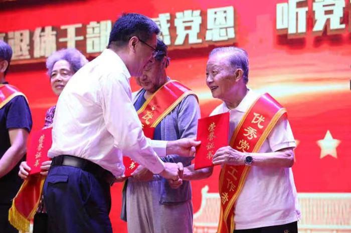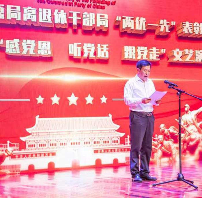 离退休干部局局长、党委书记薛全福宣读“两优一先”表彰决定
