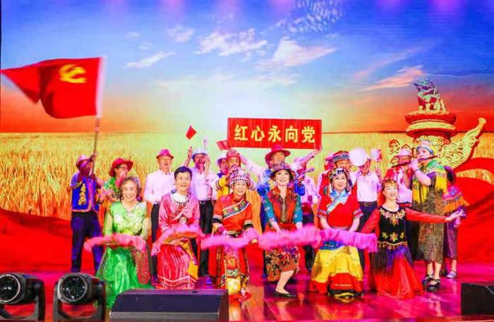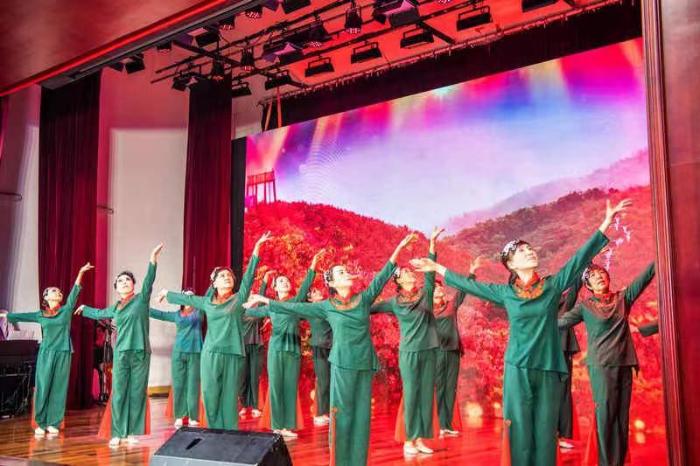 在文艺演出中,体现林草特色的时装模特秀以《塞罕坝赞歌献给党》舞台剧的形式开场,讲述了塞罕坝精神和塞罕坝艰苦创业、建设生态文明和脱贫攻坚的故事。“林韵”舞蹈队、“林声”合唱团、“林枫”葫芦丝演奏队等老干部文体团队和党支部的离退休干部表演了15个丰富多彩的节目。诗朗诵《中国共产党百年述职报告》、《党的恩情说不完》和诗歌表演唱《百年伟业托彩虹》再现了中国共产党百年发展历程;女声独唱《啊!中国的土地》、《党啊亲爱的妈妈》,舞蹈《那一片红》表达了离退休干部对党感恩之情;京剧《沙家浜》唱段《智斗》表现了对抗战英雄的崇敬;合唱《社会主义好》、《我们走在大路上》、《跟着共产党走》等节目唱出了对党和国家无尽的赞美和热爱;空竹表演《红星照我去战斗》、葫芦丝合奏《唱支山歌给党听》、萨克斯独奏《我和我的祖国》等节目艺术地烘托和表现了庆祝建党主题。一个个精彩节目纷纷亮相,汇报了离退休干部局各党支部文化建设、老年大学办学成果,赢得现场阵阵掌声。节目歌颂了中国共产党成立100年来取得的辉煌成就,生动展现了中国共产党百年来带领中国人民进行革命、建设、改革的壮美画卷,热情地讴歌了党的十八大以来,在以习近平同志为核心的党中央坚强领导下,中国特色社会主义进入新时代,昂首阔步迈向全面建设社会主义现代化国家新征程,表达了林草老同志不忘初心,永远跟党走的坚定理想信念和决心,展现了老一辈林草人忠诚党、奉献党,坚定不移跟党走的精神风貌。