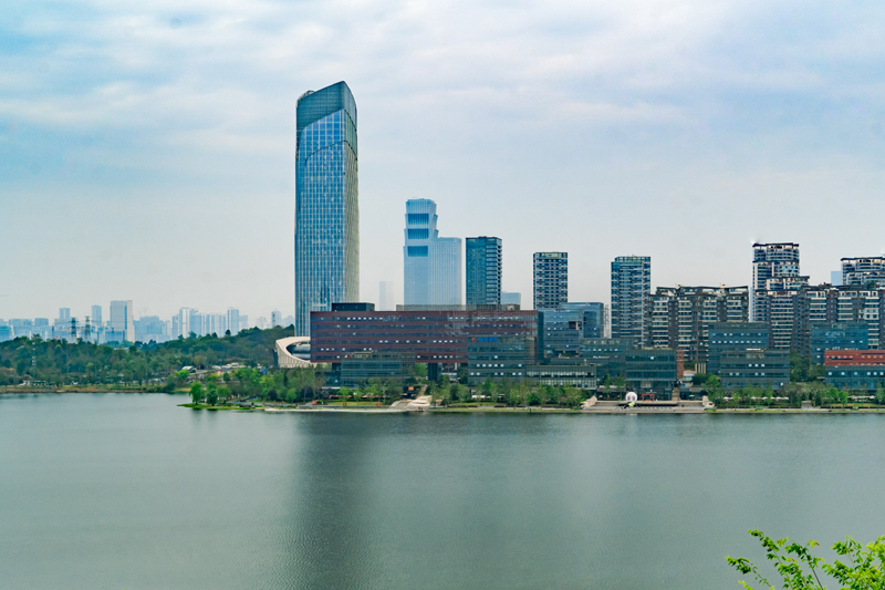 这是2023年4月25日在四川天府新区拍摄的兴隆湖畔的产业园,清华四川能源互联网研究院就坐落于其中。新华社记者 唐文豪 摄