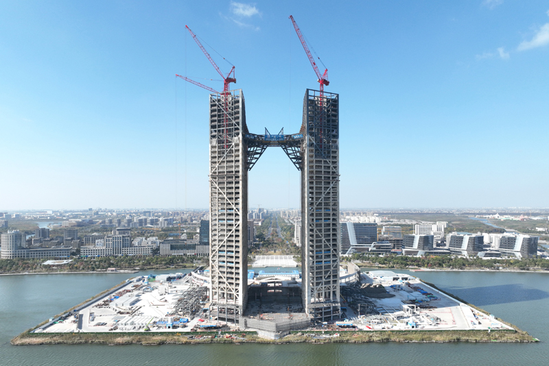 在上海,上海自贸试验区临港新片区在建的西岛金融中心项目南北双塔核心筒不久前封顶,未来将成为现代服务业开放区的重要产业载体和区域新地标……