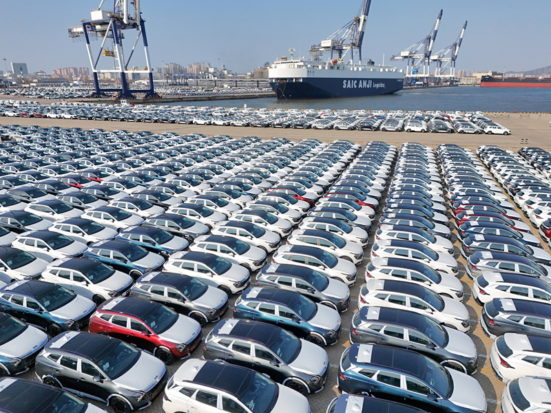 2025年1月2日,大批国产汽车在山东港口烟台港等待装船出口(无人机照片)。新华社发(唐克 摄)