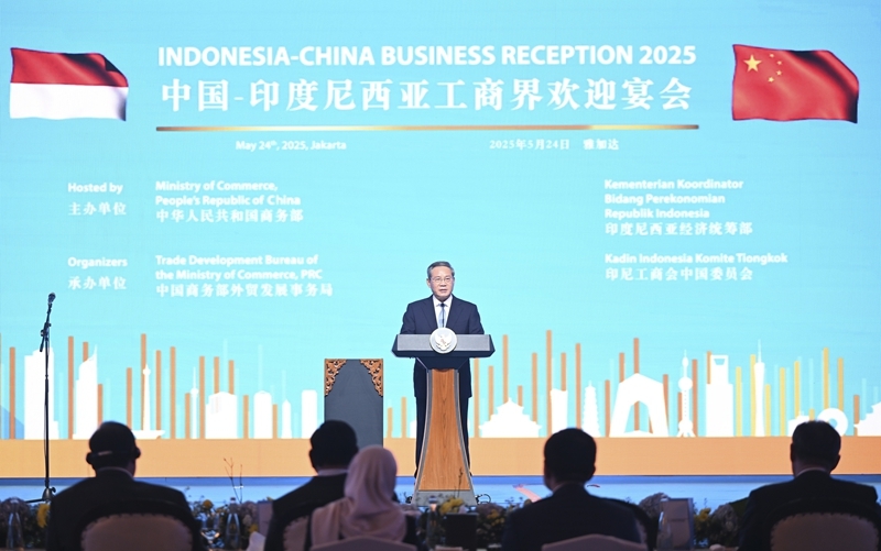 当地时间5月24日晚,国务院总理李强在雅加达同印度尼西亚总统普拉博沃共同出席中国-印尼工商界晚宴并致辞。新华社记者 李响 摄