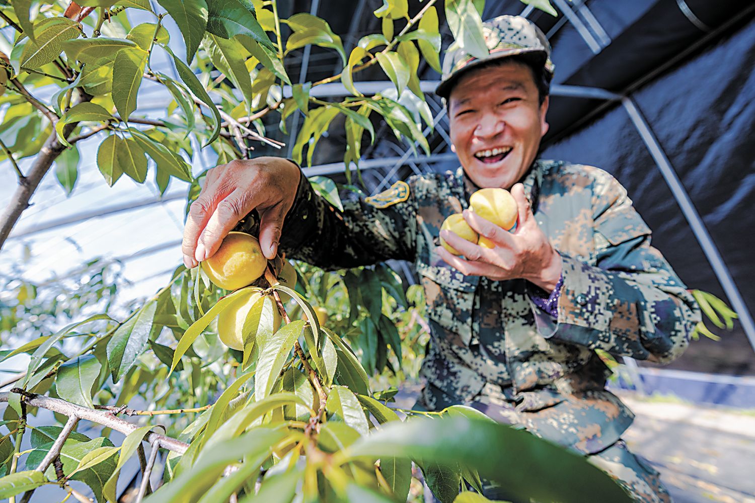 加格达奇林业局百泉谷景区职工王文玖正在采摘成熟的桃子。 吕阳摄