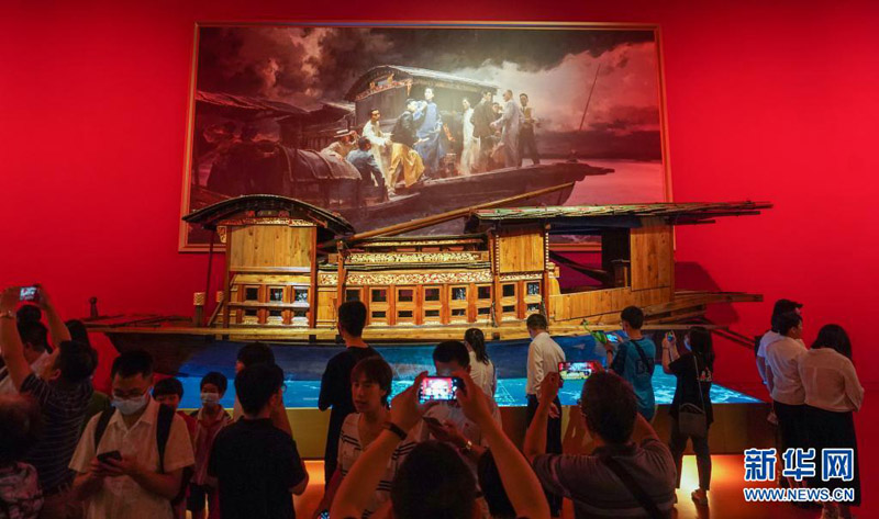中共一大纪念馆人头攒动。鲜红的党旗前,参观者重温入党誓词的声音铿锵有力。